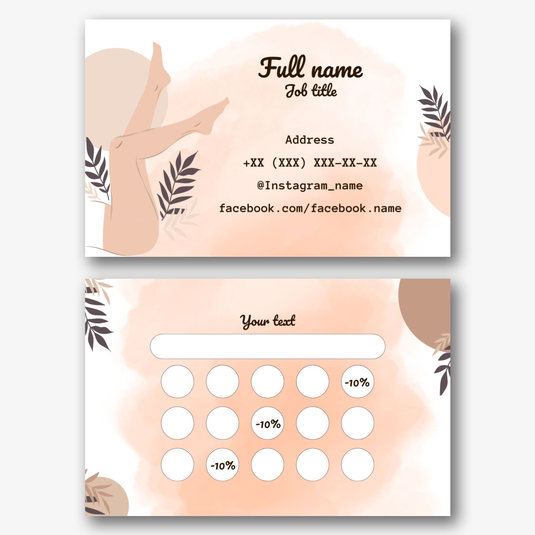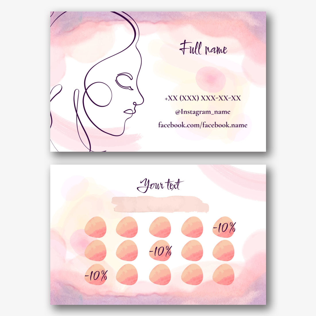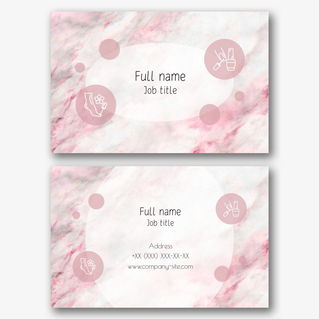 Free business card template for beauty salon, manicure master. Create a business card layout with your own hands in the business card designer.