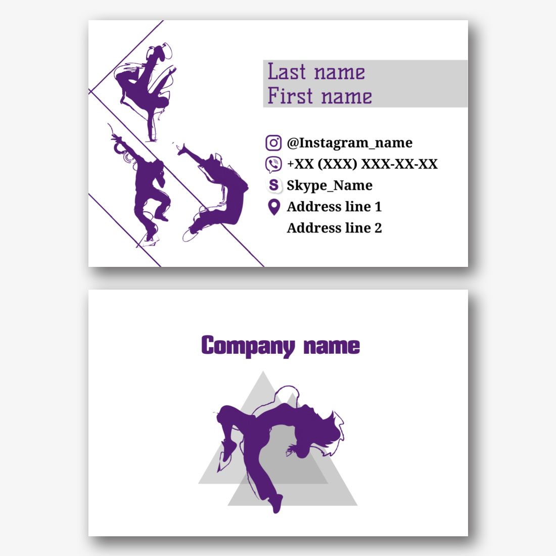 Free business card template for gyms, gyms, fitness clubs, athletes. Create a business card layout with your own hands in the business card designer.