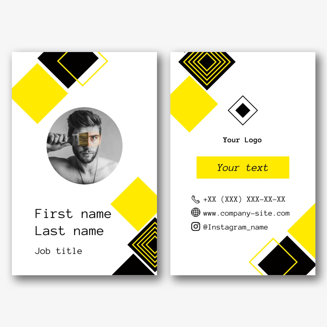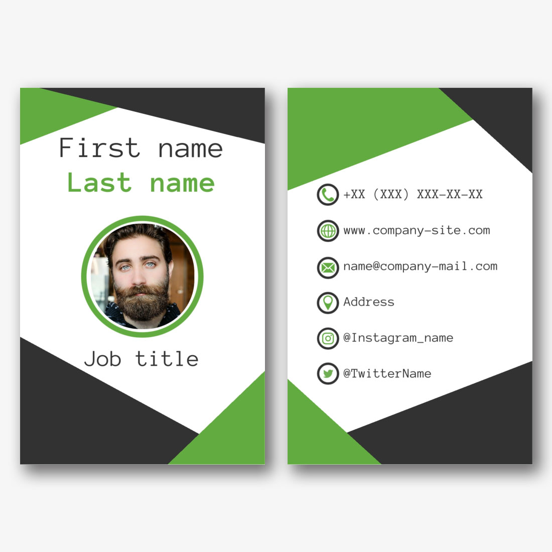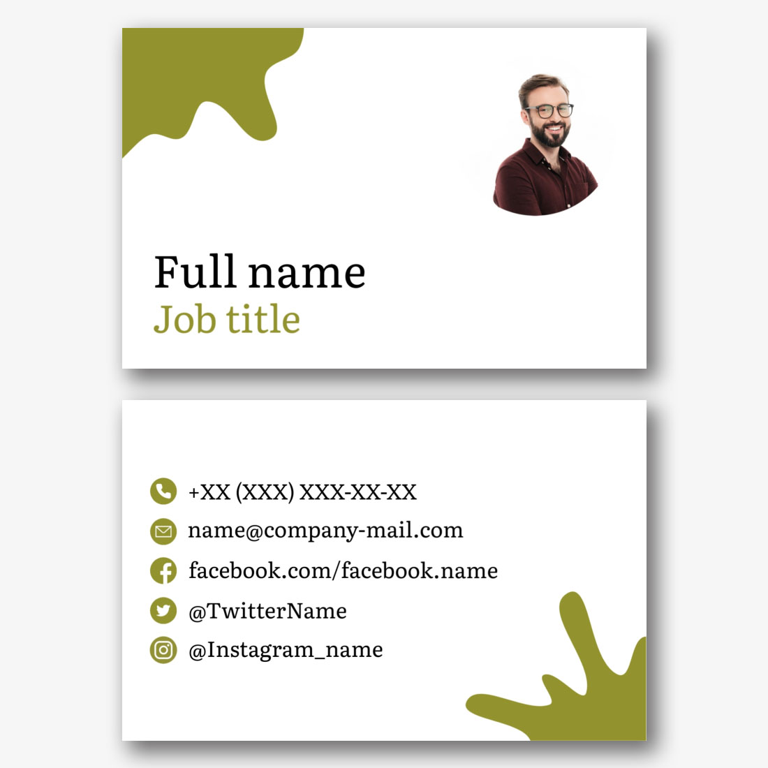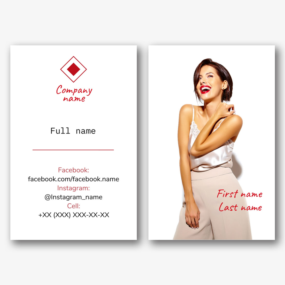 Free, stylish personal business card template with photos. Create a layout with your own hands in the business card designer.