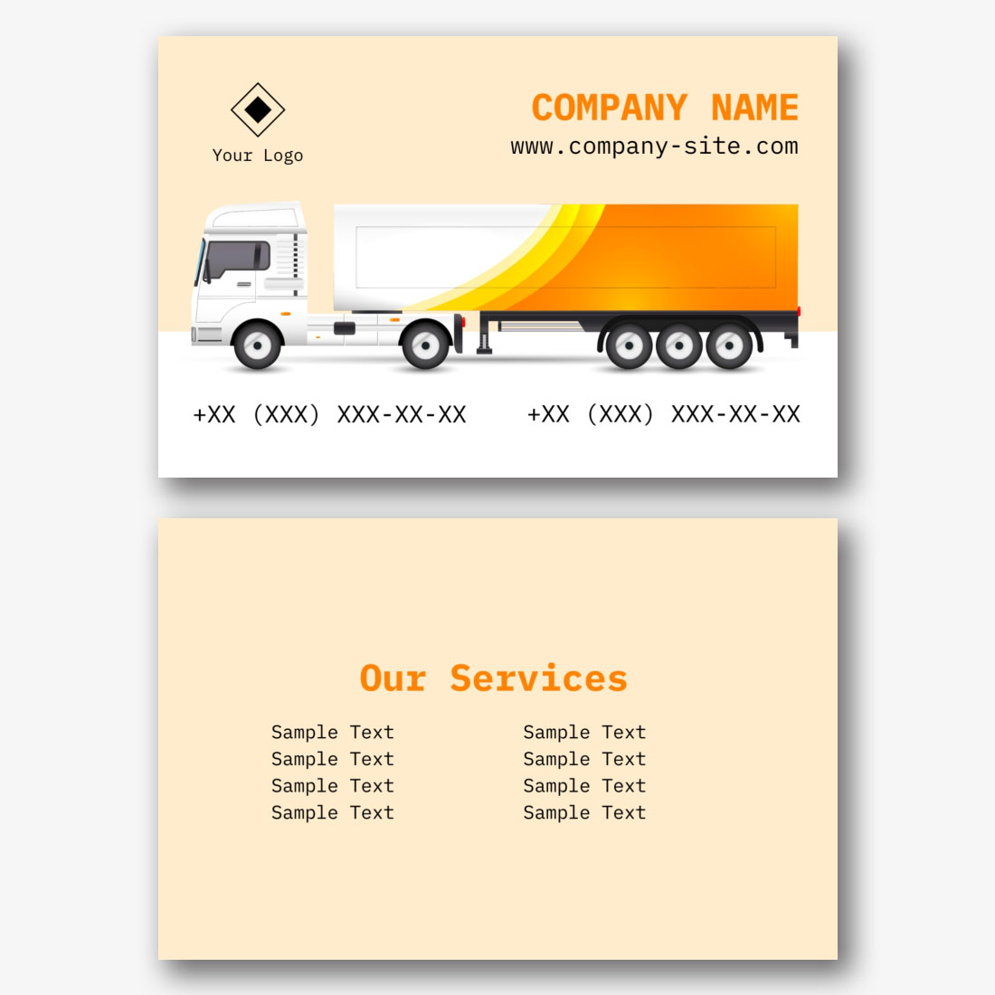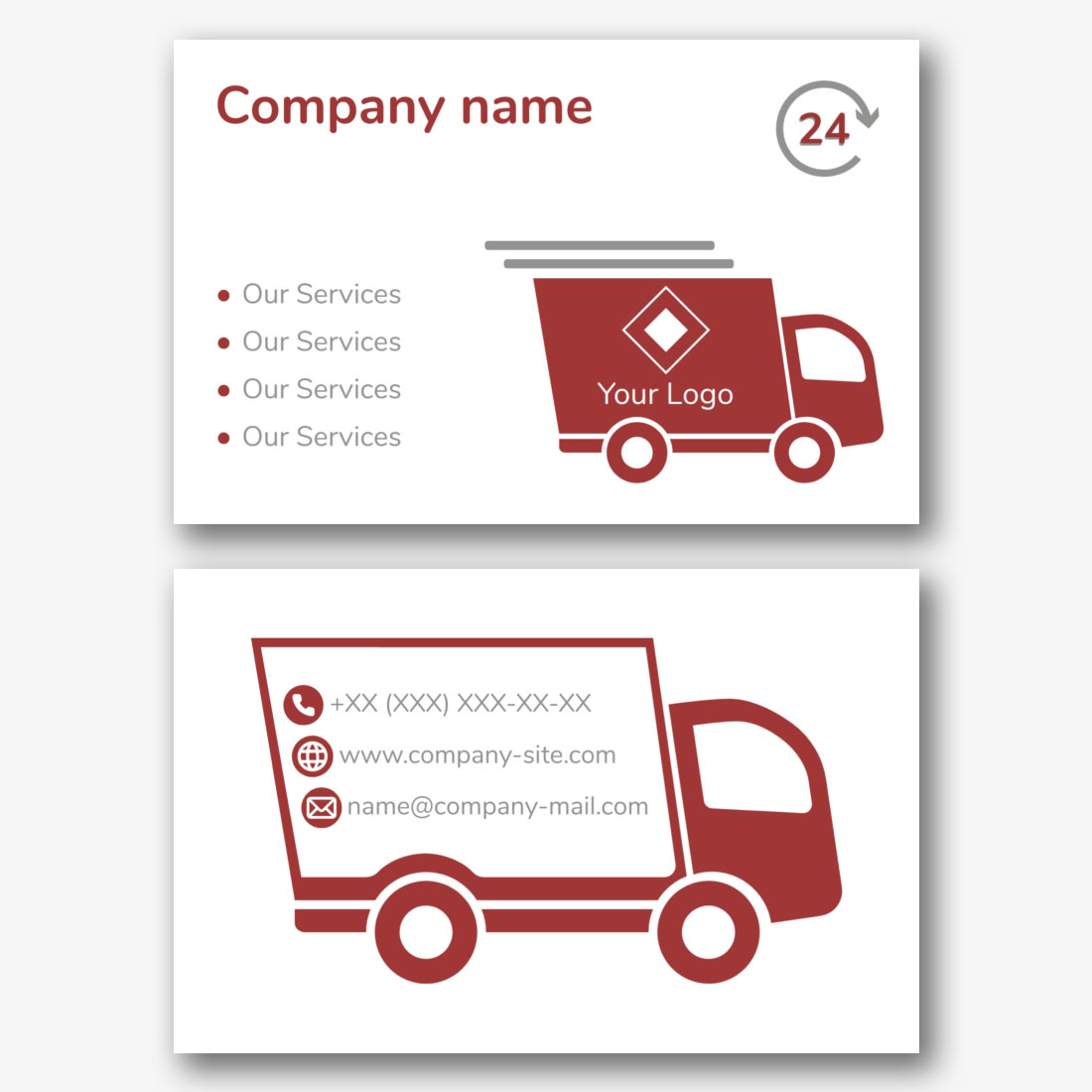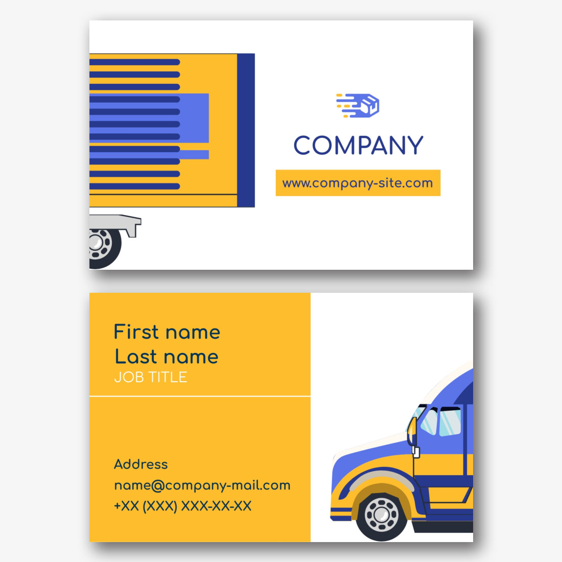 Free business card template for cargo transportation, carriers, delivery, transport companies. Create a business card layout with your own hands in the business card designer.