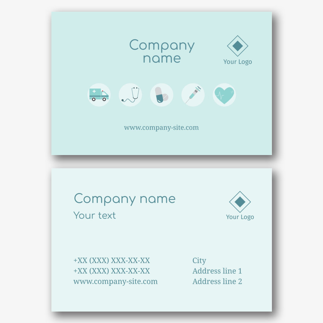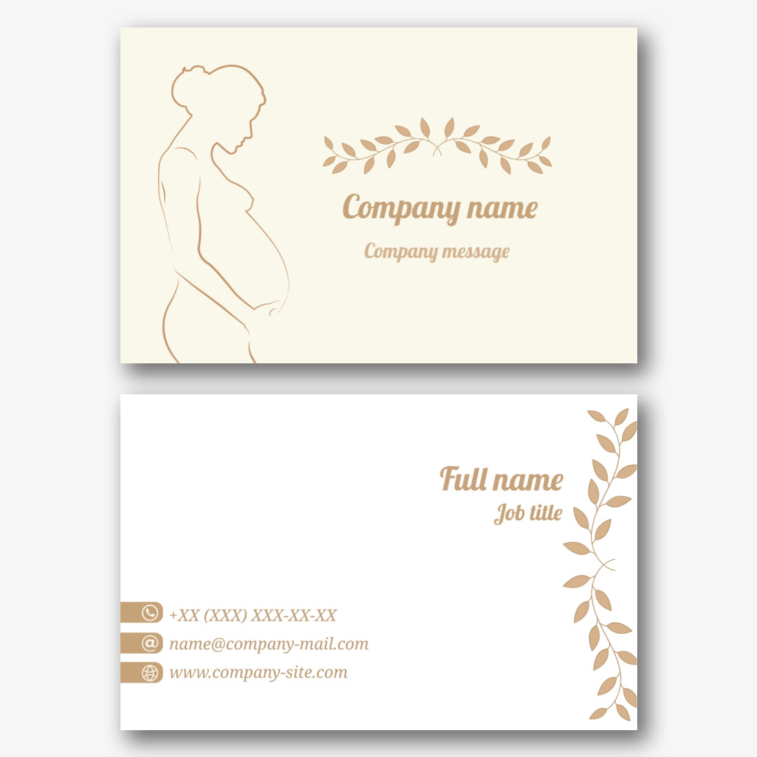 Free business card template for a gynecologist, a reproductologist, a clinic for pregnant women. Create a layout with your own hands in the business card designer.