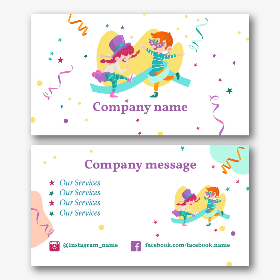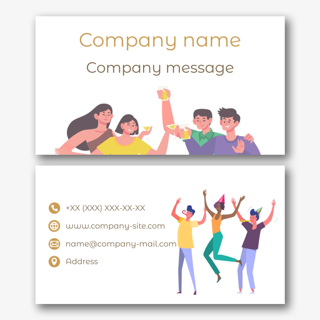 Free business card template for the organizer of holidays, event agencies, toastmasters, leading events. Create a layout with your own hands in the business card designer.