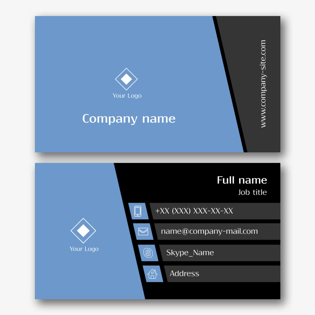 Free template for a concise, abstract business card with patterns. Create a layout with your own hands in the business card designer.