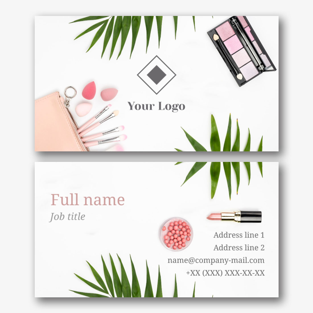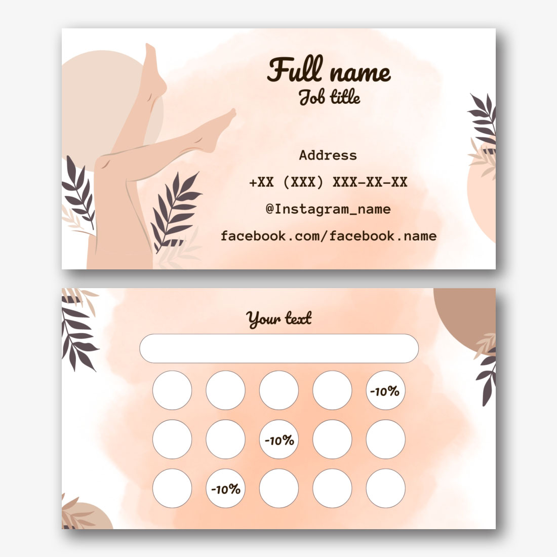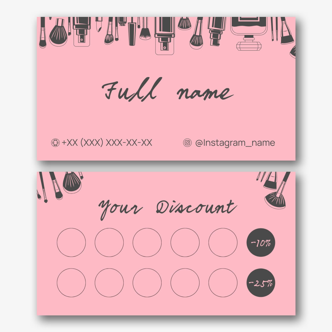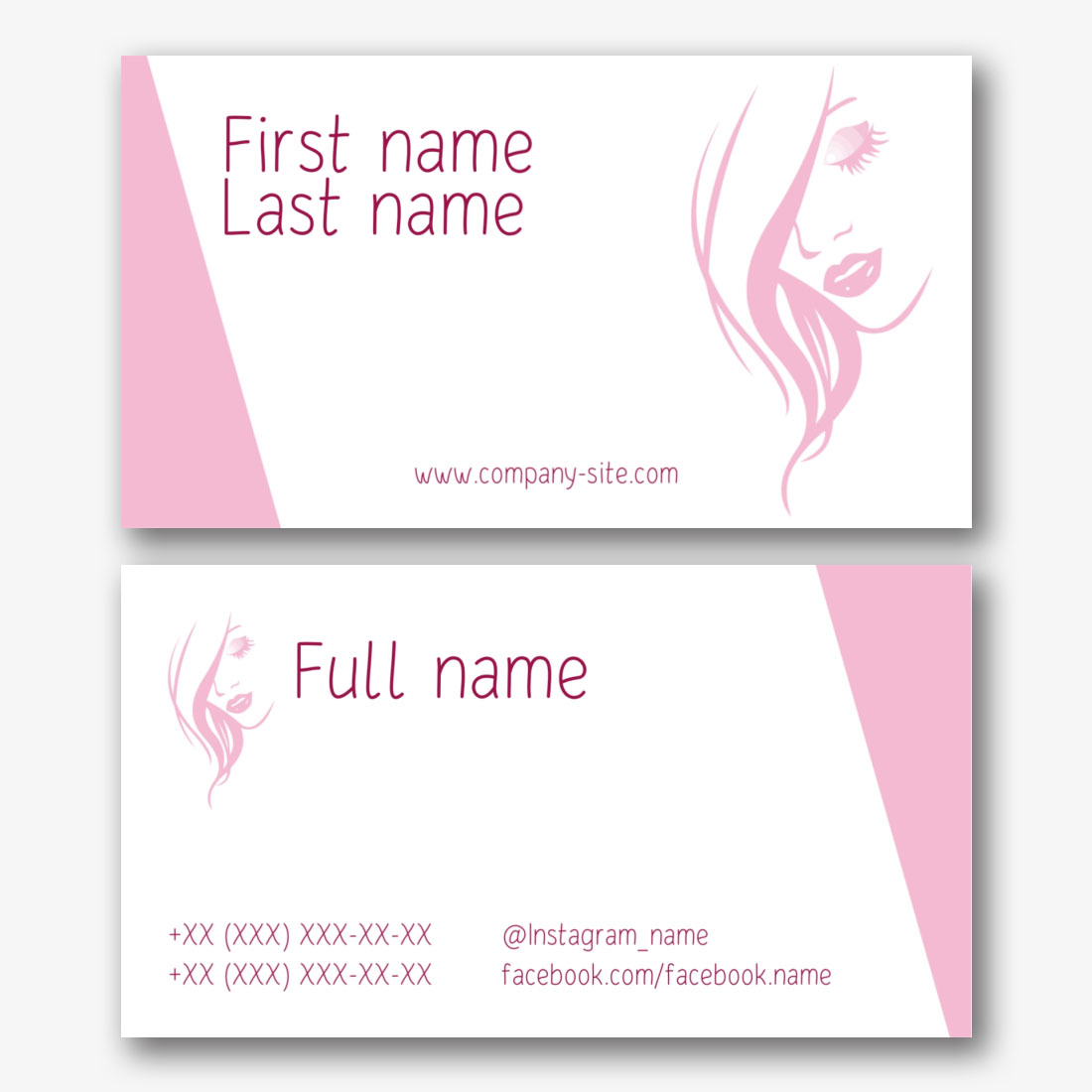 Free template of a feminine business card of a manicure master, nail salon, beauty studio. Create a business card layout with your own hands in the online business card designer.