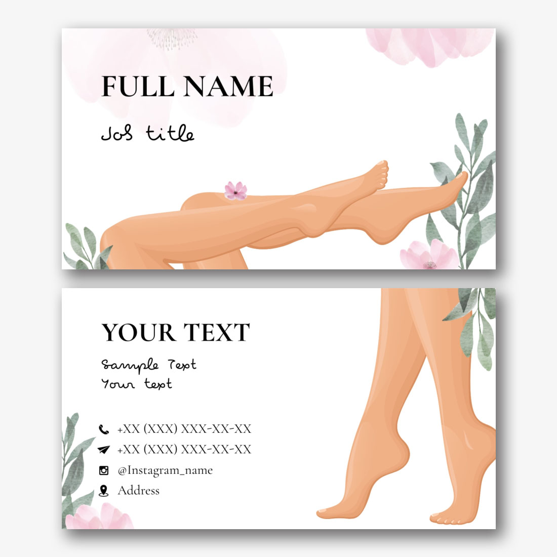 Free template of a feminine business card of a manicure master, nail salon, beauty studio. Create a business card layout with your own hands in the online business card designer.