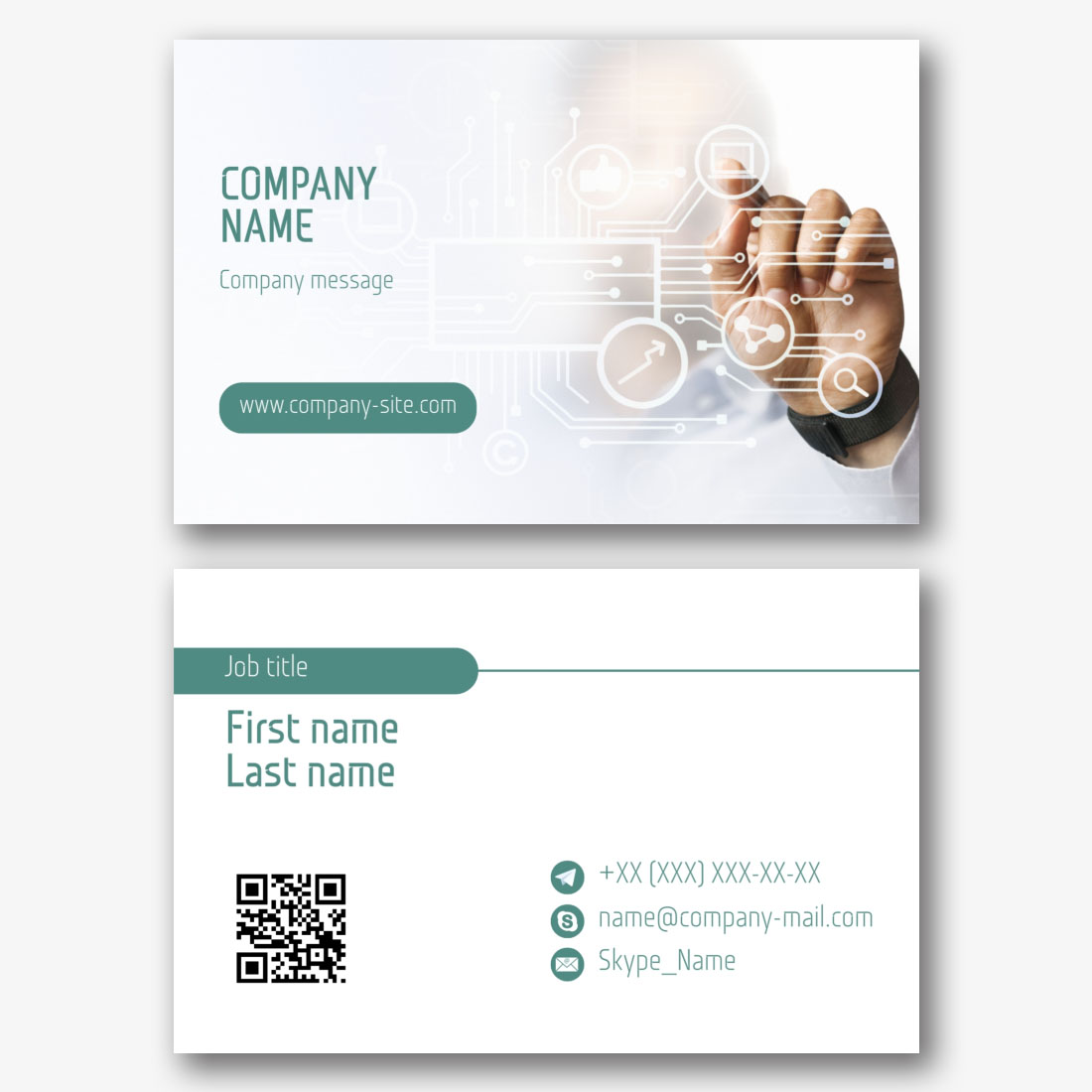 The free Euro business card template of a service engineer is a stylish and unique design made in black and green tones. The composition of the template symbolizes technological progress and the importance of computer technology in the work of an engineer, and also emphasizes his professionalism in the field of maintenance and repair of computer equipment. This business card template is also great for any computer wizard who wants to stand out from the crowd and demonstrate his professionalism and knowledge in the field of computer technology.