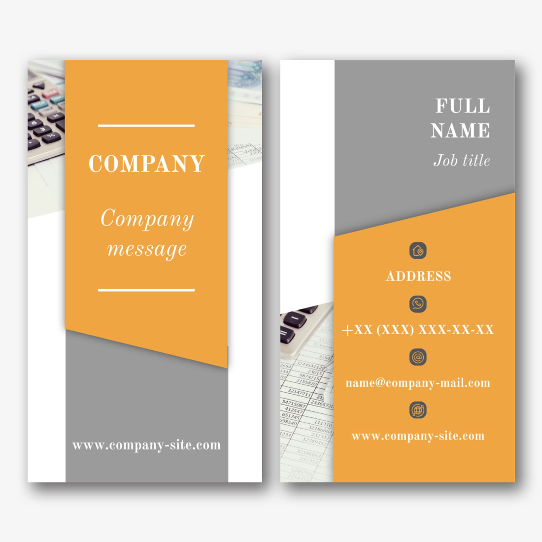 The free template of a vertical business card of a financial manager or consulting company is made using bright yellow elements and attracts attention with its unusual design. Against the background of a yellow circle there are images of folders and documents symbolizing professional care of the financial needs of the client. The yellow color in the design of the business card embodies optimism, joy, energy, and also means prosperity and wealth, which is directly related to the work of a financial manager. The white color symbolizes purity, reliability, integrity and honesty. Together, this creates the impression of high-quality and professional service. The design of the business card successfully combines practicality and beauty, making it an effective marketing solution. After all, it not only displays the name and contact information of a company representative, but also expresses the general philosophy of financial consulting. After receiving it, the client immediately understands that the work of a financial manager will be comfortable for both parties, professionally and honestly. Due to the combination of bright colors and iconic images, the business card primarily attracts attention and is remembered, which allows you to stay in the head of potential customers. This design is endowed with high advertising value and allows you to make a business card a real tool for promotion in the field of financial consulting.