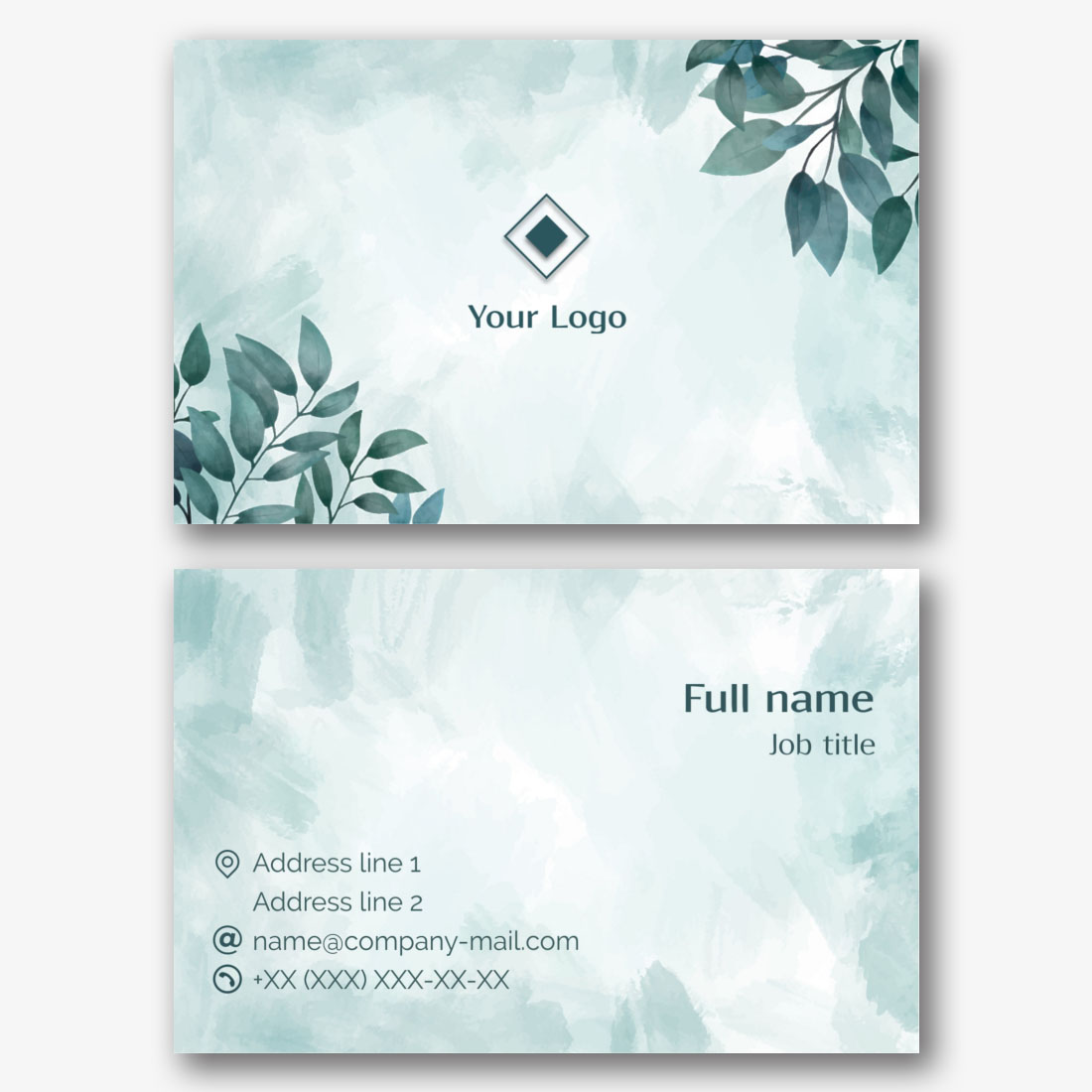 The Euro business card template of a florist / flower shop with watercolor flowers on a white background is an excellent choice for those who want to create a beautiful and aesthetically attractive idea of their business. Delicate flowers, painted in watercolor, give the template sophistication and sophistication. The white background adds lightness and helps the colors stand out against the background. This template is very convenient for use in the online business card designer, where you can substitute your logo, text and contact details to create a unique business card that matches your brand. If you work in the field of flower business, this template will be an ideal choice for you – it will help you attract the attention of potential customers with its design and style.