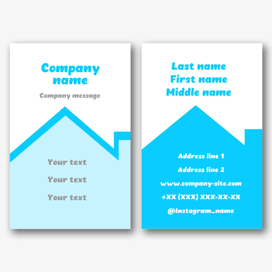 The universal Eurovisitka template with the image of a house in straight, precise lines is a very popular and effective option for various real estate-related businesses. It is suitable for real estate agencies, architectural bureaus, construction companies, interior designers and even for individuals engaged in renting or selling real estate. If you decide to use this template in our online designer to create a unique business card, you can add your logo, contact information and any other elements that you want to emphasize. The designer will also give you the opportunity to choose a color scheme, fonts and style that match your brand and personality. Creating a unique Euro standard business card using this template will help you stand out from the competition and make an impression on potential customers.