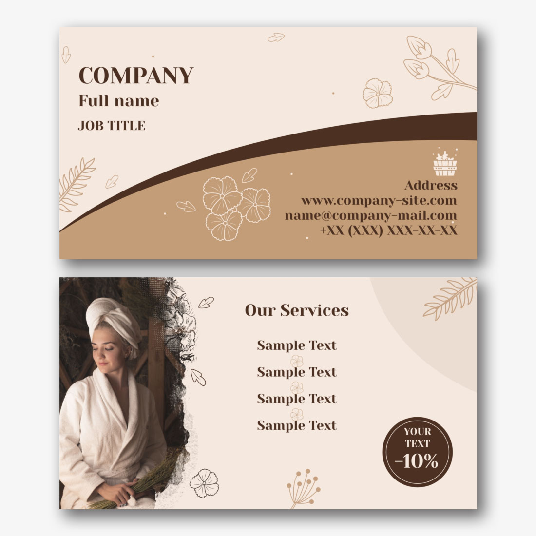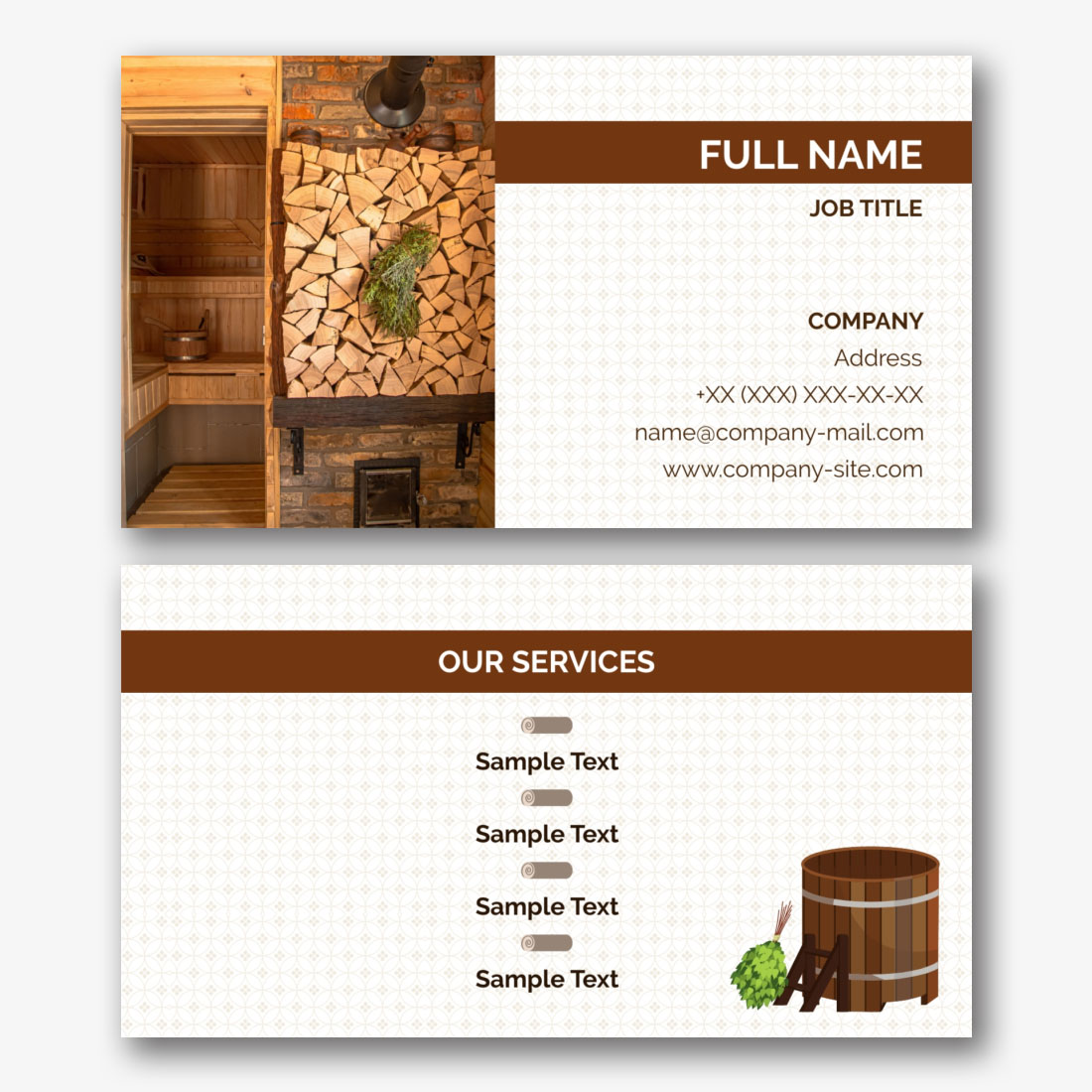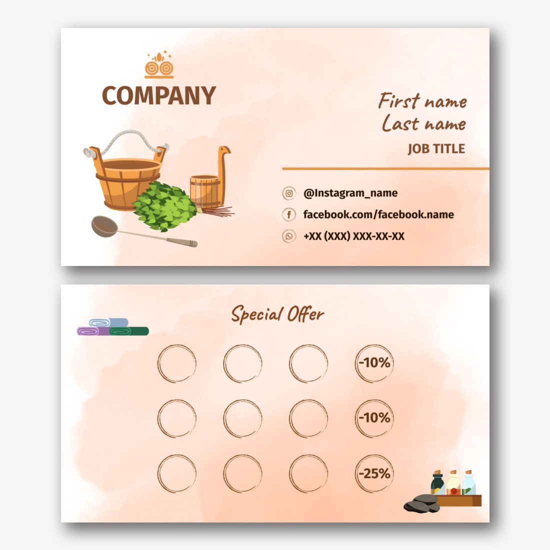 The elegant and stylish design of this template will attract the attention of your audience and leave an unforgettable impression. Our business cards are easily customized in our convenient online designer. Add your logo, contact details and additional information to create an individual style that reflects the uniqueness of your business. You can be sure that your business card will look as professional as the services you provide. Our business card for baths is not only a promotion tool, but also an indicator of your style and attention to detail. Let your brand stand out from others and create a unique image that will be remembered for a long time.