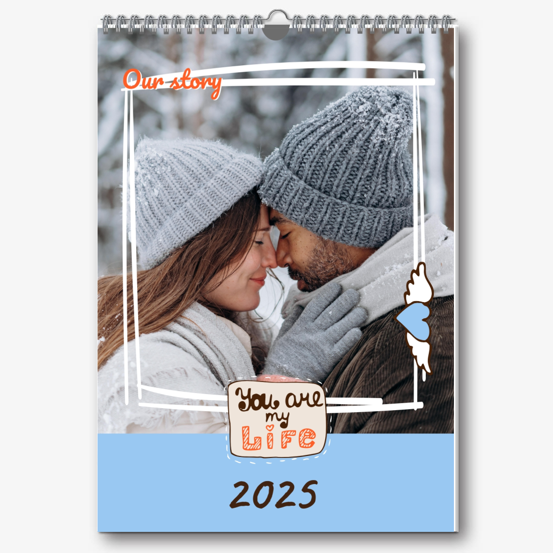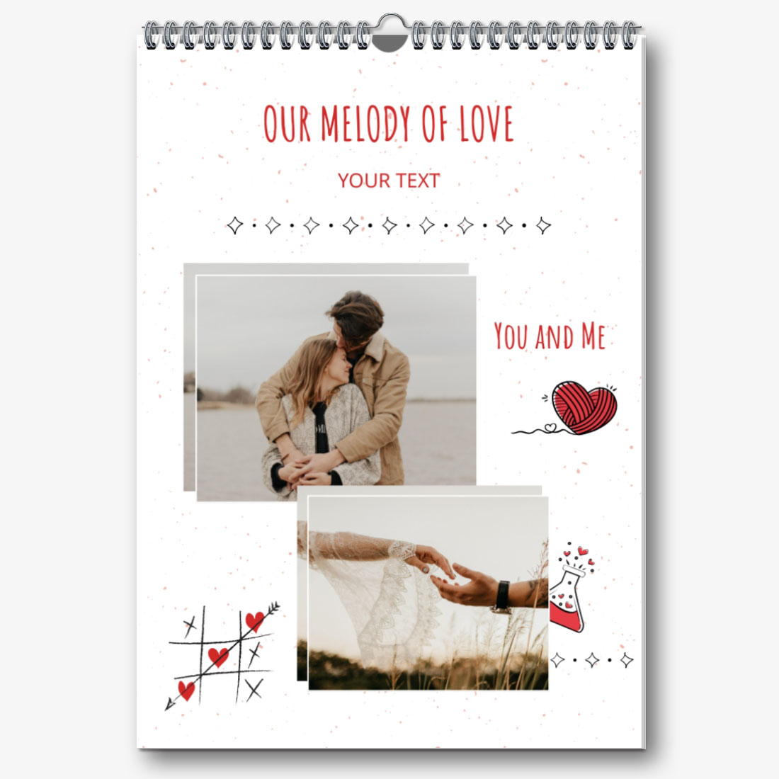 A ready—made calendar template for lovers is the perfect way to save your best moments and make them a part of every day. This template was created with a romantic theme in mind: delicate colors, stylish decorative elements and a harmonious composition create an atmosphere of warmth and comfort. The template is perfect for couples who want to emphasize their feelings, as well as for use in the professional field related to holidays, weddings or creativity. For example, it can be adapted for wedding photographers, event organizers, or designers creating romantic gifts. The main advantage of this calendar is the possibility of full personalization in our online designer. You can upload your photos, change text elements, or add important dates to make the calendar as unique as possible. Our designer allows you to easily customize fonts, colors and even decorative elements, which gives you complete freedom for self-expression. This template makes it possible to create not just a calendar, but a real memorable gift that will delight every day. Just choose a ready-made foundation, add your ideas and enjoy the result!