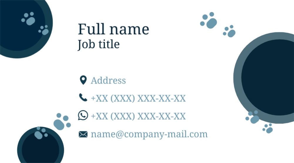 Business card template for a veterinarian
