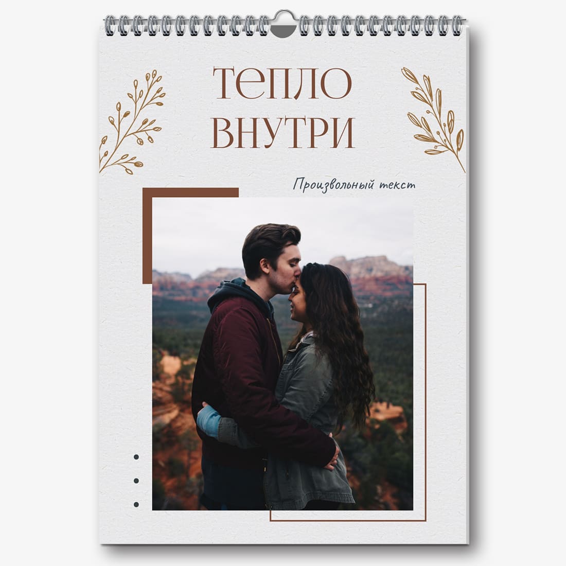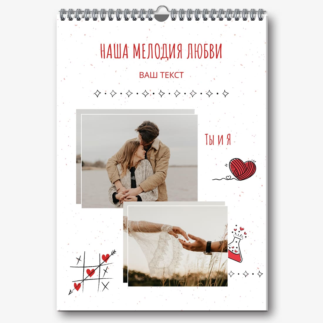 Готовый шаблон календаря для влюбленных — это идеальный способ сохранить ваши лучшие моменты и сделать их частью каждого дня. Этот шаблон создан с учетом романтической тематики: нежные цвета, стильные декоративные элементы и гармоничная композиция создают атмосферу тепла и уюта. Шаблон прекрасно подходит для пар, желающих подчеркнуть свои чувства, а также для использования в профессиональной сфере, связанной с праздниками, свадьбами или творчеством. Например, его можно адаптировать для свадебных фотографов, организаторов мероприятий или дизайнеров, создающих романтические подарки. Главное преимущество этого календаря — возможность полной персонализации в нашем онлайн-конструкторе. Вы можете загрузить свои фотографии, изменить текстовые элементы или добавить важные даты, чтобы сделать календарь максимально уникальным. Наш конструктор позволяет легко настроить шрифты, цвета и даже декоративные элементы, что дает полную свободу для самовыражения. Этот шаблон дает возможность создать не просто календарь, а настоящий памятный подарок, который будет радовать каждый день. Просто выберите готовую основу, добавьте свои идеи и наслаждайтесь результатом!